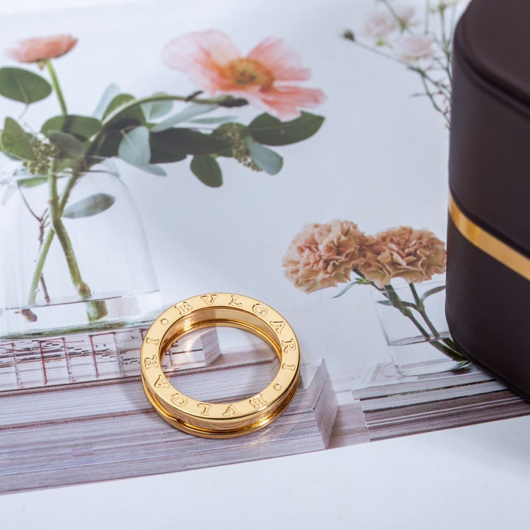 Bulgari bezel letter single ring diamond-free ring-4009