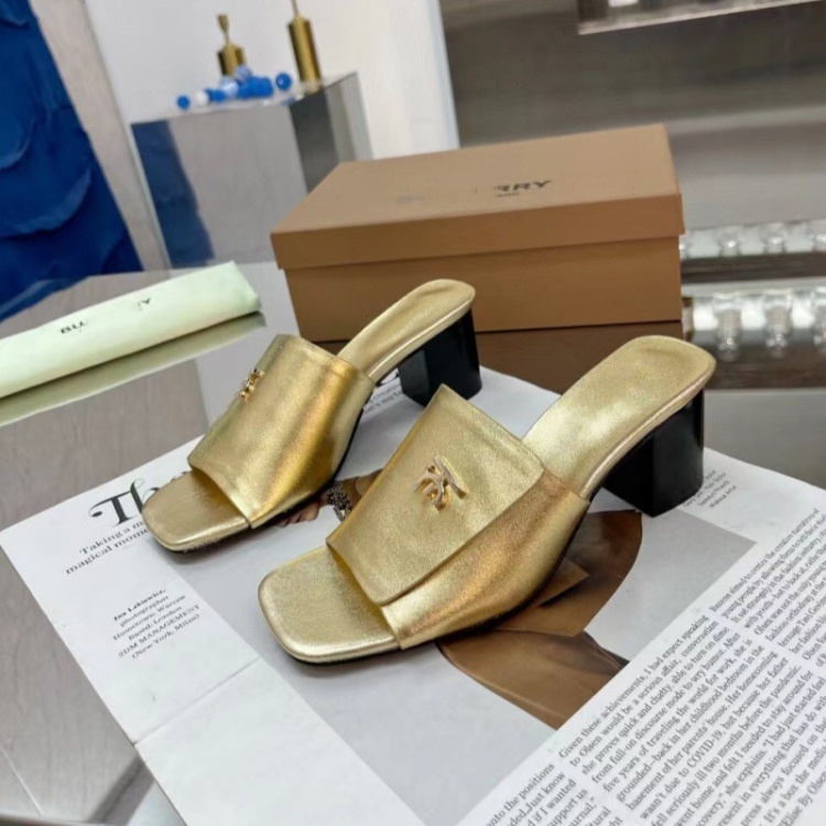 Burberry new metal letter logo high-heeled slide sandals-5757