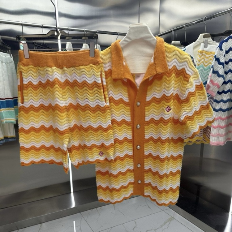 Casablanca Knit Sweater Short-Sleeve Jacquard Shorts Set-6359
