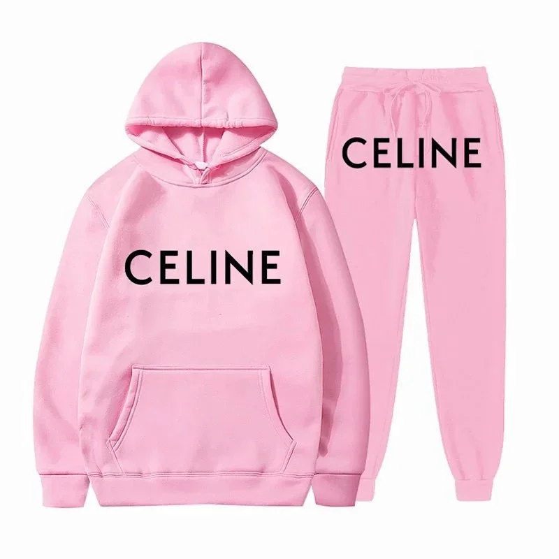 Celine New Print Letter Loose-fitting Hooded Sweatshirt Set-5516