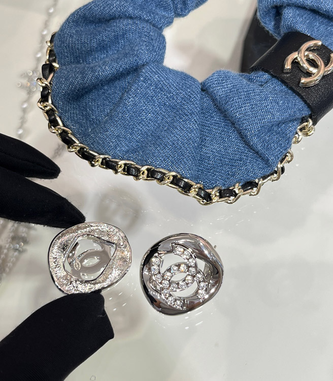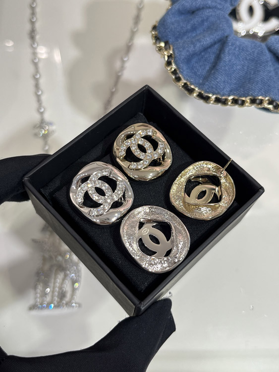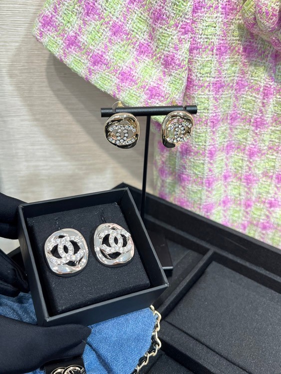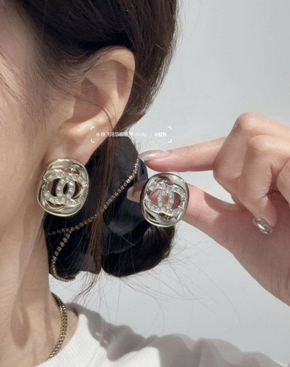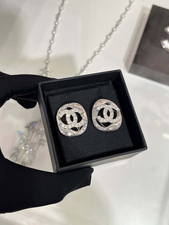 Home > Celine silver full diamond double C hollow square earrings-3901