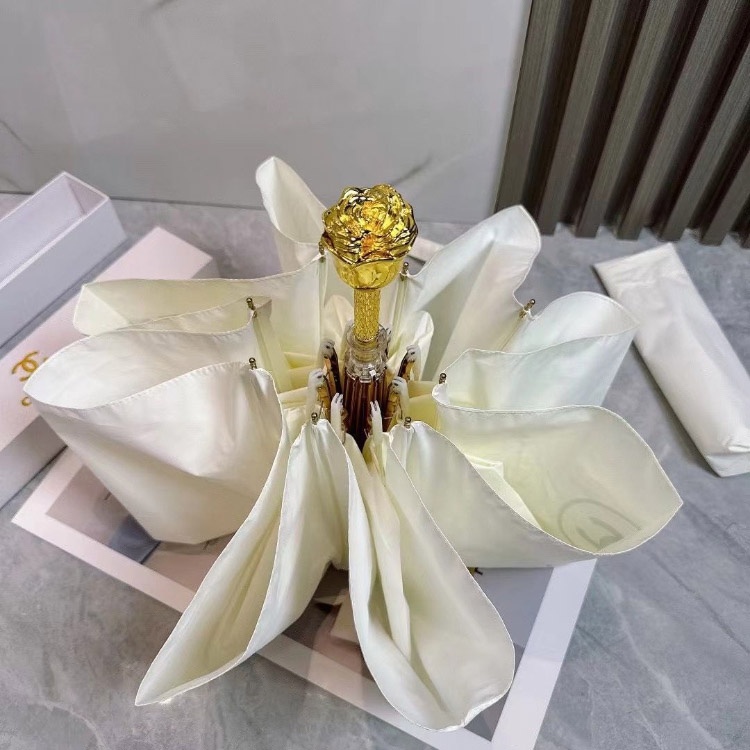 Home > Chanel New Three-Fold Sun Umbrella with Rose-Shaped Handle-6531