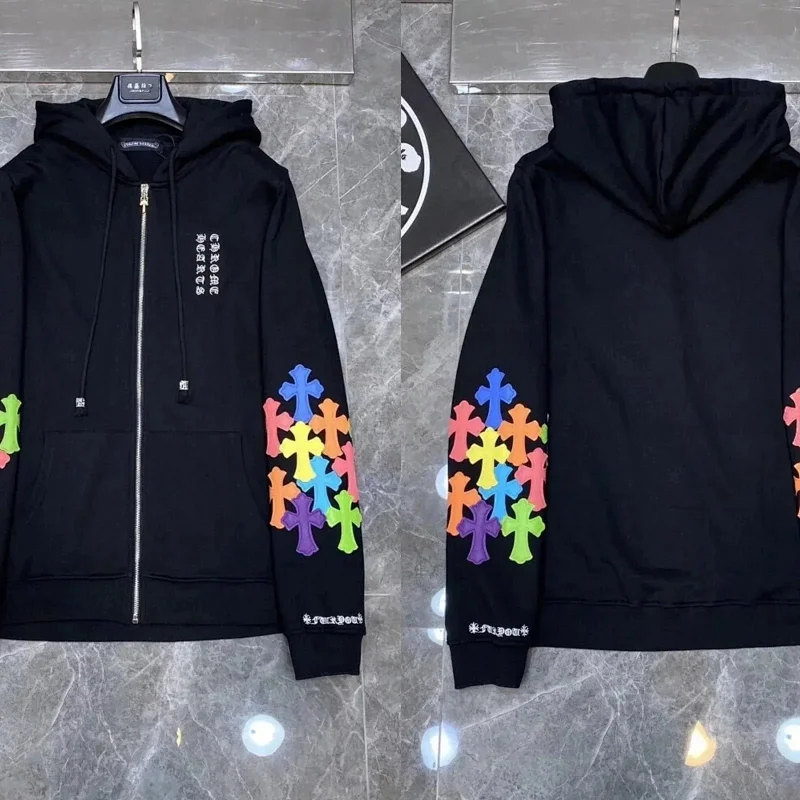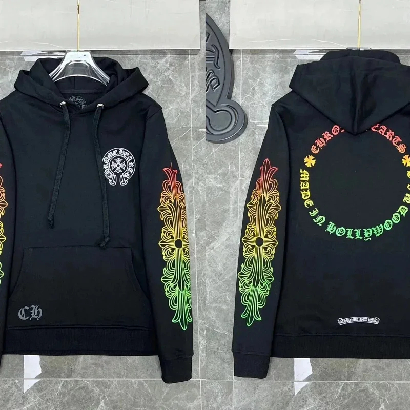 Chrome Hearts CH 2025 Colorful Cross Leather Sanskrit Hooded Sweatshirt for Casual and Versatile-2516