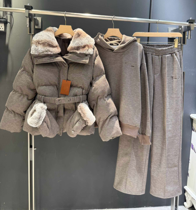 Home > Loro Piana new four-piece suit with fur collar and waist belt-5382