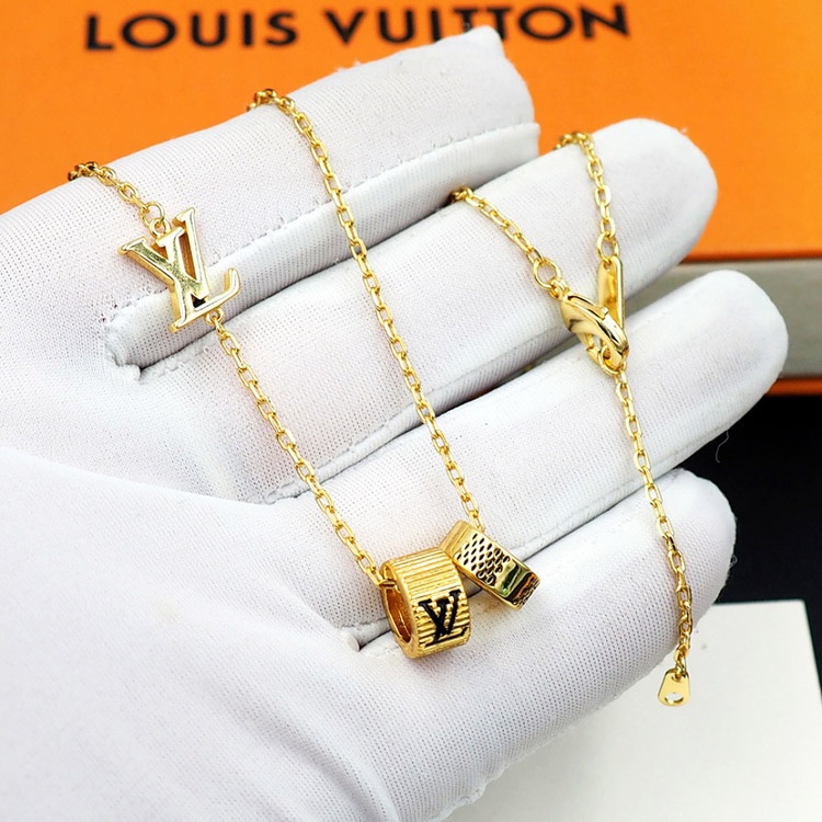 Louis Vuitton LV micro logo detail letter necklace-3913