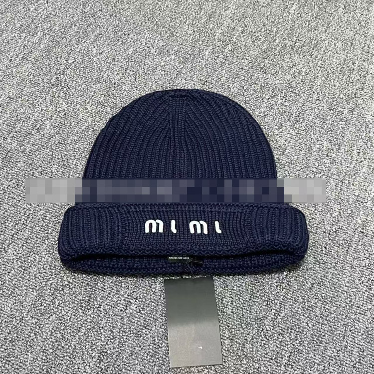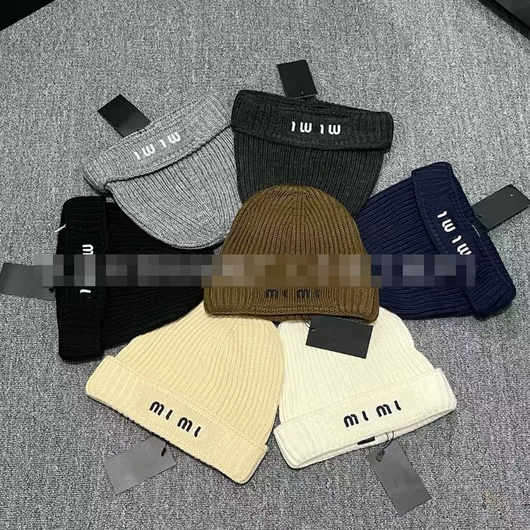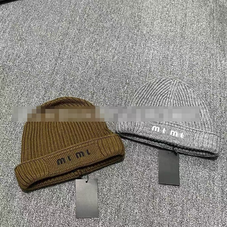 Miu Miu letter-embroidered ear-warming knitted hat-5845