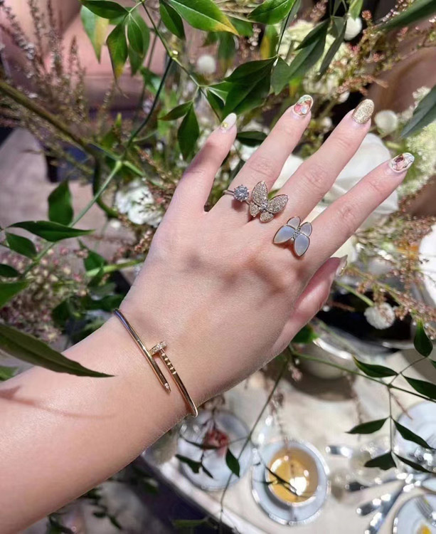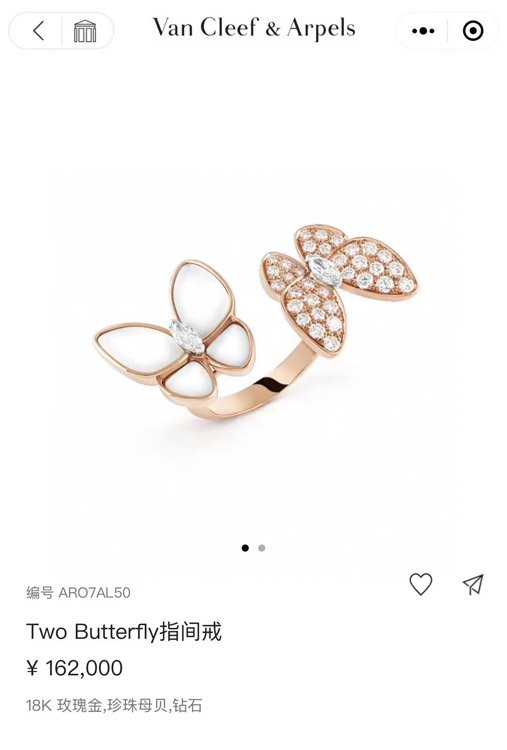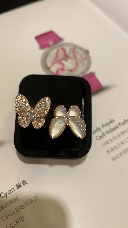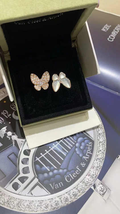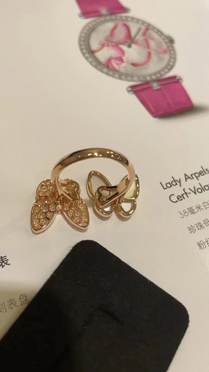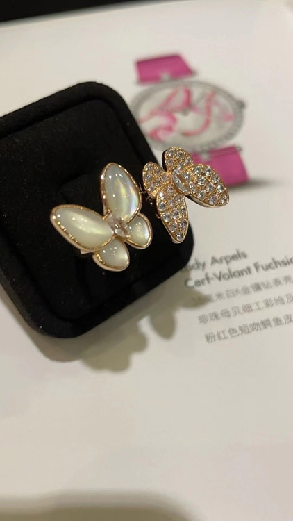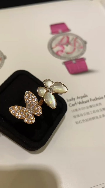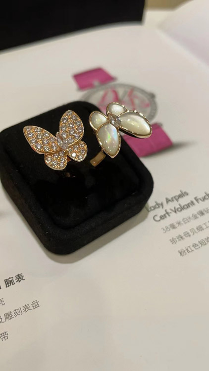 Home > Van Cleef & Arpels White Mother-of-Pearl Diamond Butterfly Rose Gold Ring-3734