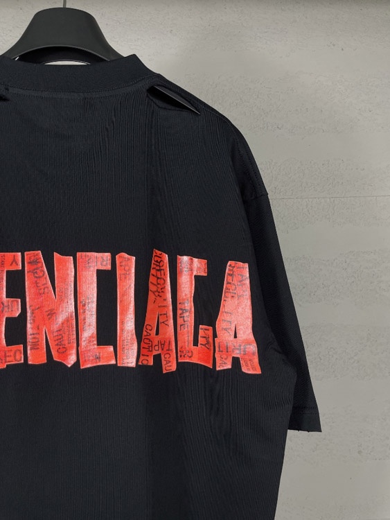 Balenciaga new collection distressed and faded loose-fitting short-sleeved T-shirt with print-5335