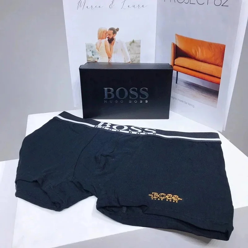 Boss Men's stylish solid color logo embroidered breathable briefs boxer briefs (mens 3pcs)-2392