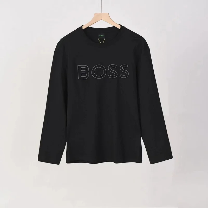 BOSS stretch cotton round neck embossed letter sweatshirt-4469