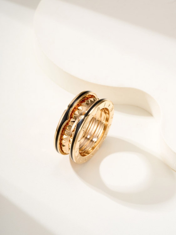 Bulgari rose gold three-circle sawtooth ring-3841