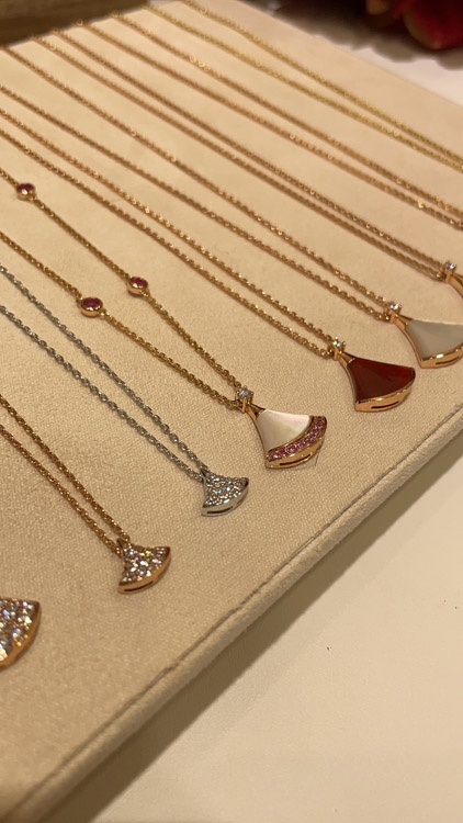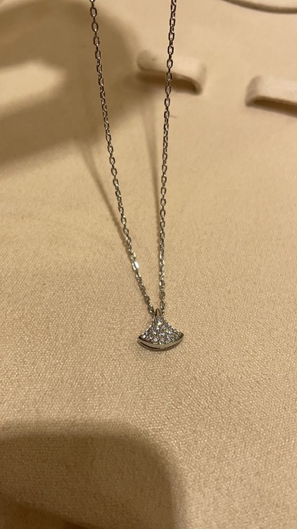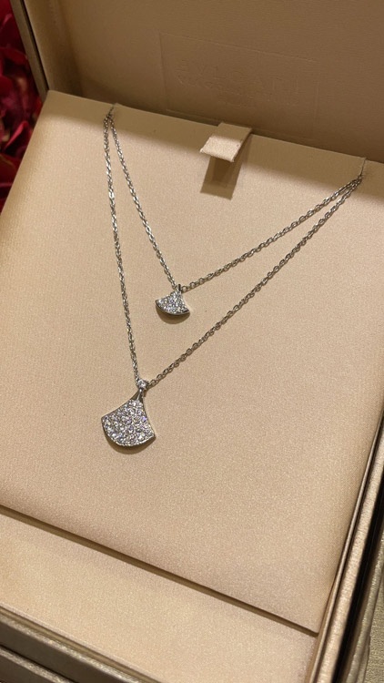 Home > Bulgari small fan full diamond white gold necklace-3896