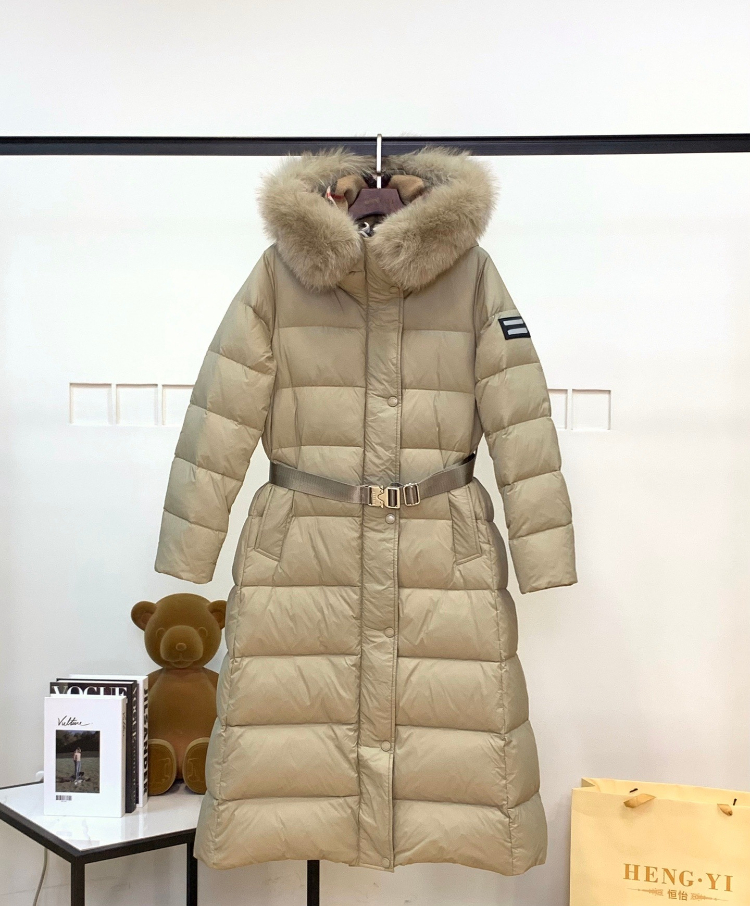 Burberry new long-length, fitted down jacket with fur-trimmed hood-5345