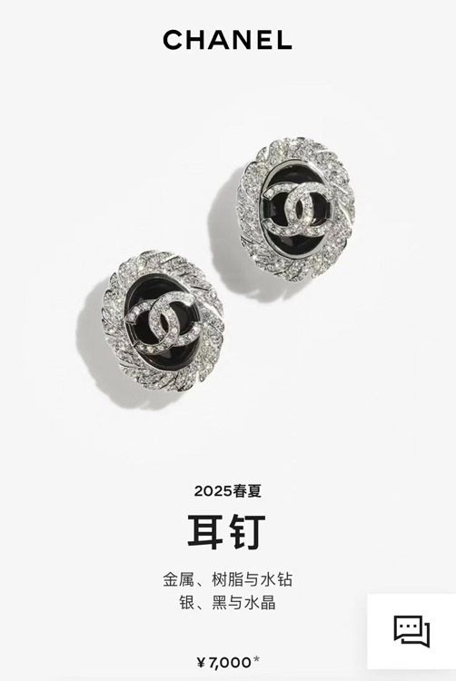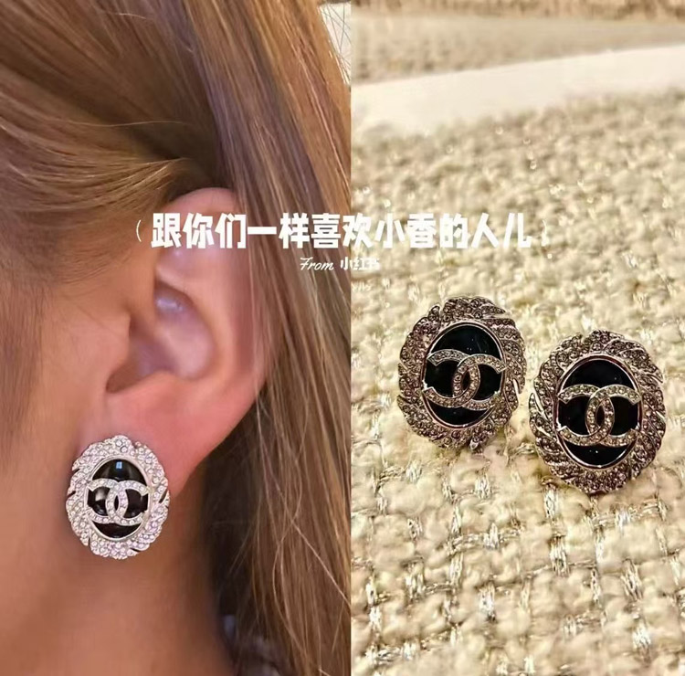 Home > Celine black oval button silver full diamond double C earrings-3900