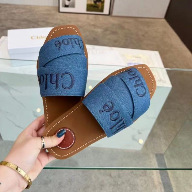 Chloe new embroidered logo flat slide sandals-5629