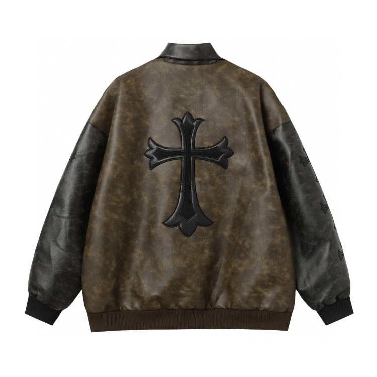 Chrome Hearts CH new classic horseshoe cross Sanskrit embroidered baseball jacket-5324