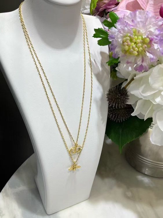 Home > Dior gold diamond bee pendant double necklace-3706