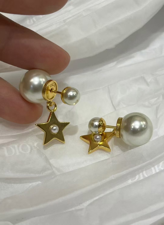 Dior gold star pearl double ball earrings-3707