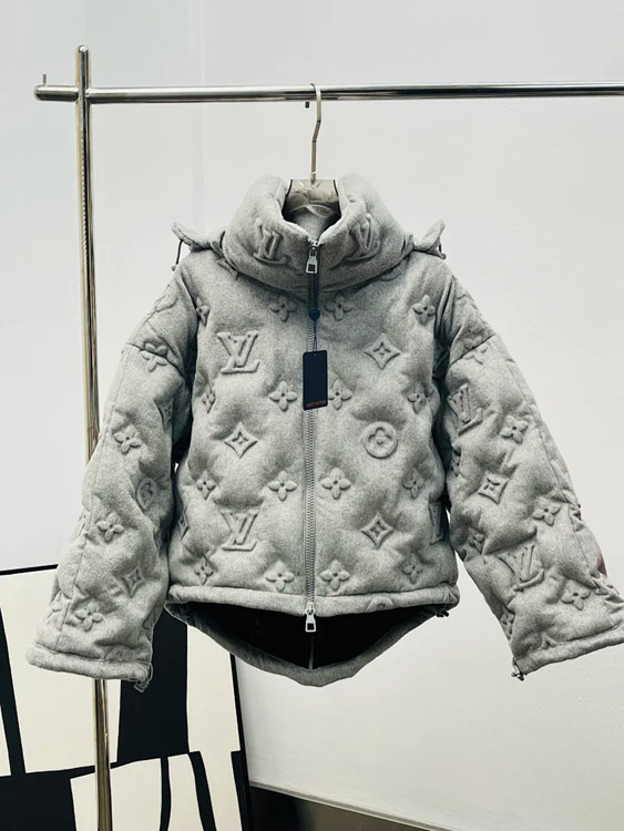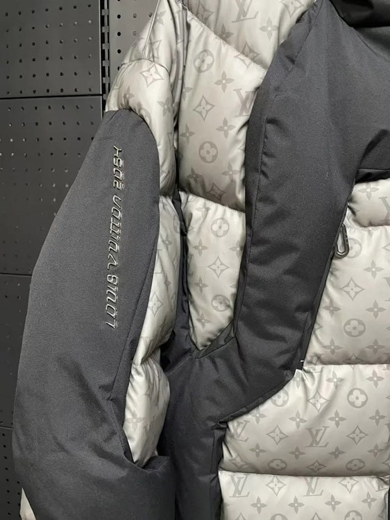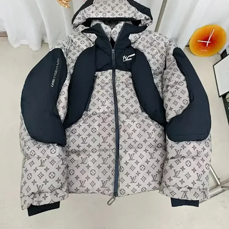 LOUIS VUITTON LV FW21 patchwork warm fluffy hooded down jacket winter -4334