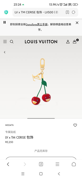 Home > Louis Vuitton LV Metal Cherry Letter Keychain-3872
