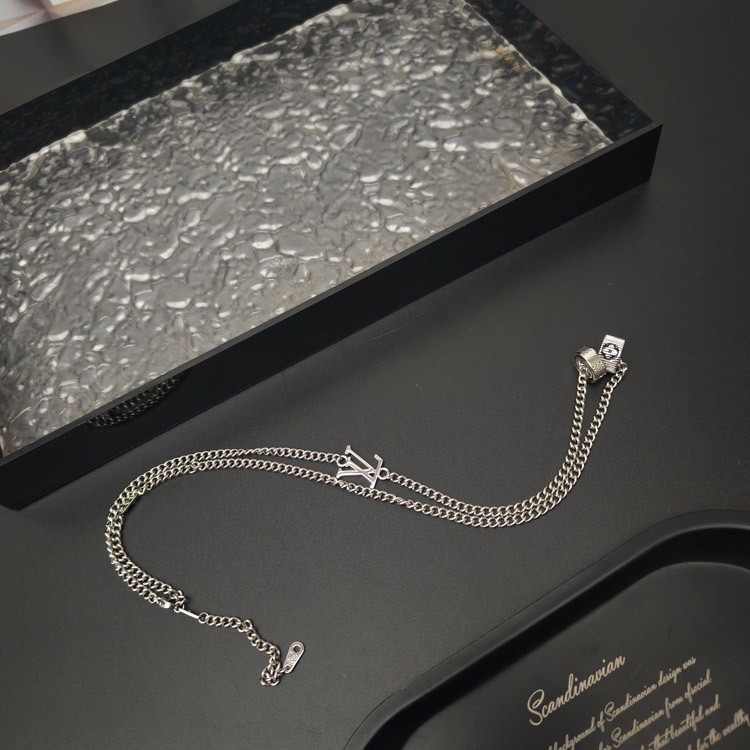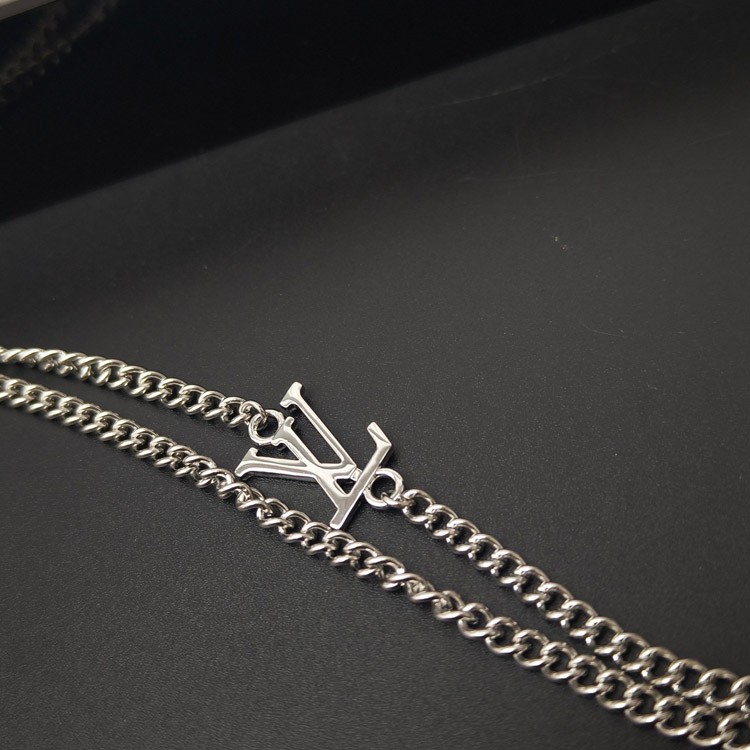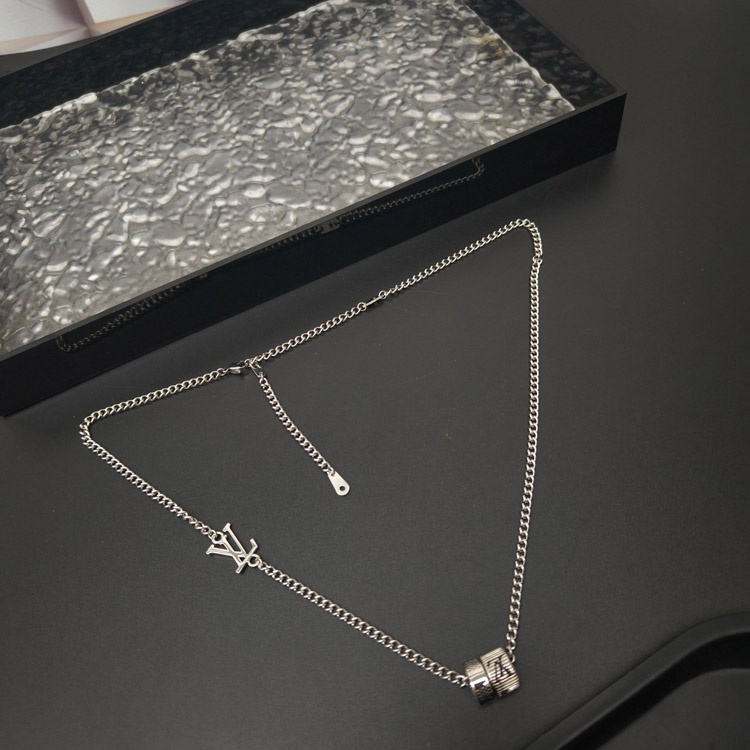 Louis Vuitton LV silver-plated letter ring necklace-3604