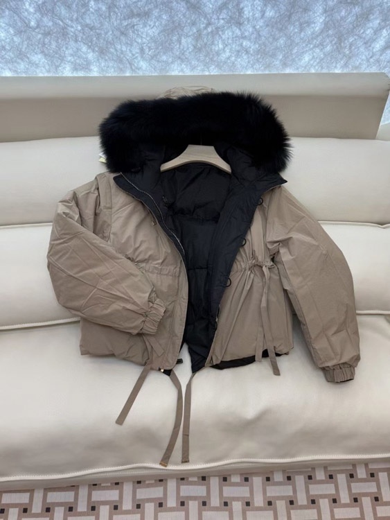 Home > MaxMara reversible down jacket with fur-trimmed hood and elasticated waist-5348