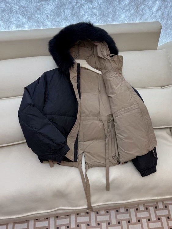 MaxMara reversible down jacket with fur-trimmed hood and elasticated waist-5348