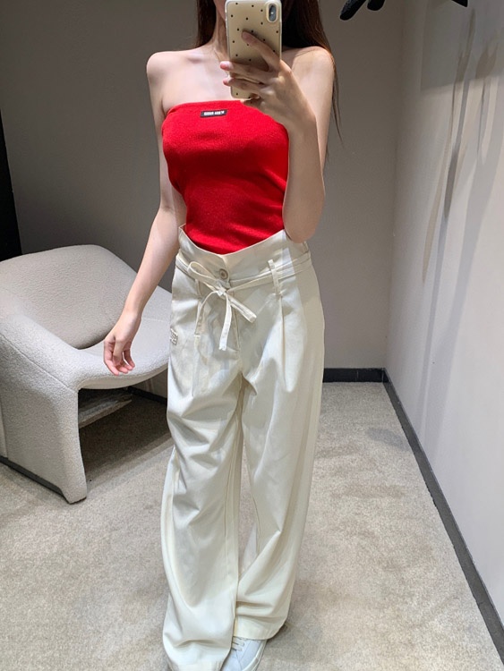 Miu Miu drawstring waist casual trousers with a relaxed, flowing fit-5302