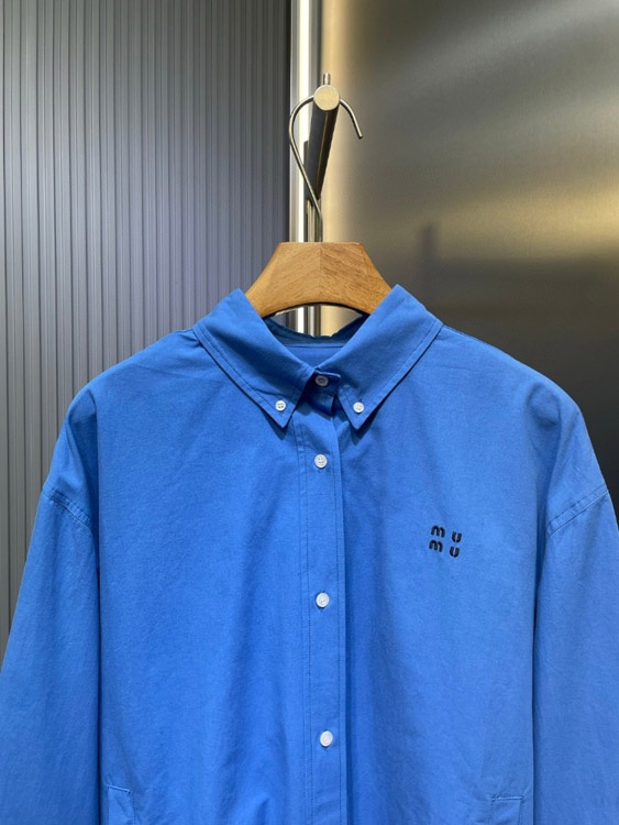 Miu Miu letter embroidered blue casual shirt jacket-5485