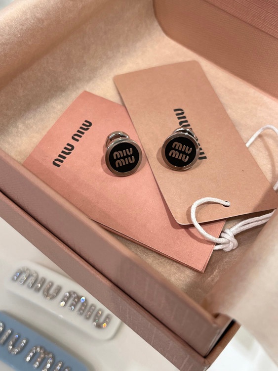 MIUMIU black enamel letter metal round button earrings-3893