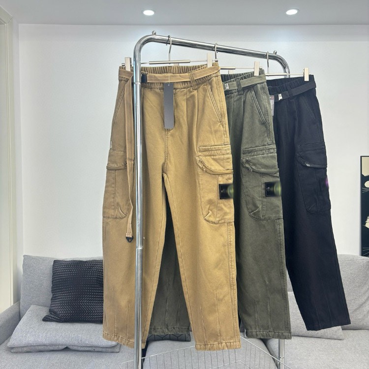 Home > Stone Island Embroidered Loose Straight-Leg Casual Multi-Pocket Cargo Pants-5238
