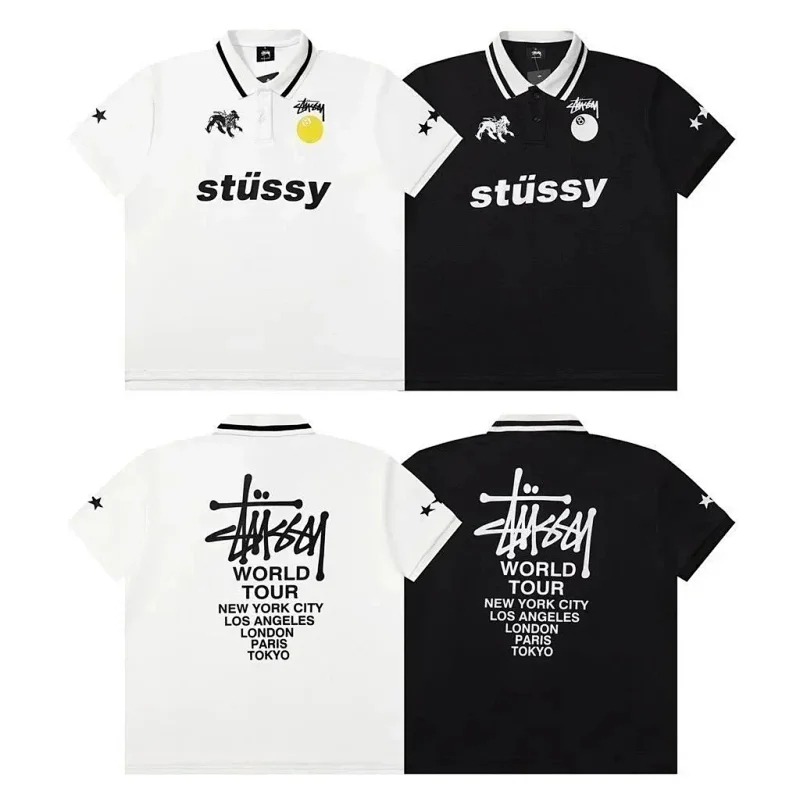 Stussy Black 8 embroidered short-sleeved polo shirt loose casual short-sleeved T-shirt-2817