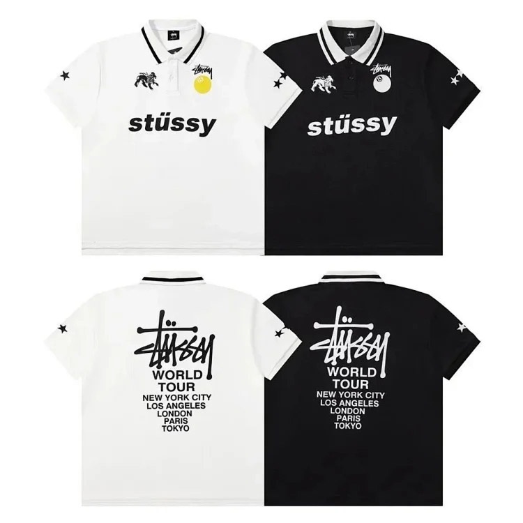 Home > Stussy Black 8 embroidered short-sleeved polo shirt loose casual short-sleeved T-shirt-2817