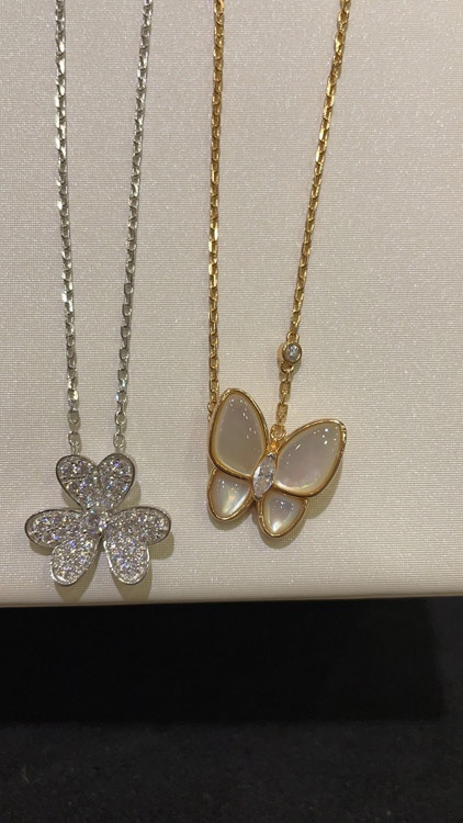 Home > Van Cleef & Arpels White Mother-of-Pearl Diamond Floral Butterfly Necklace-3733
